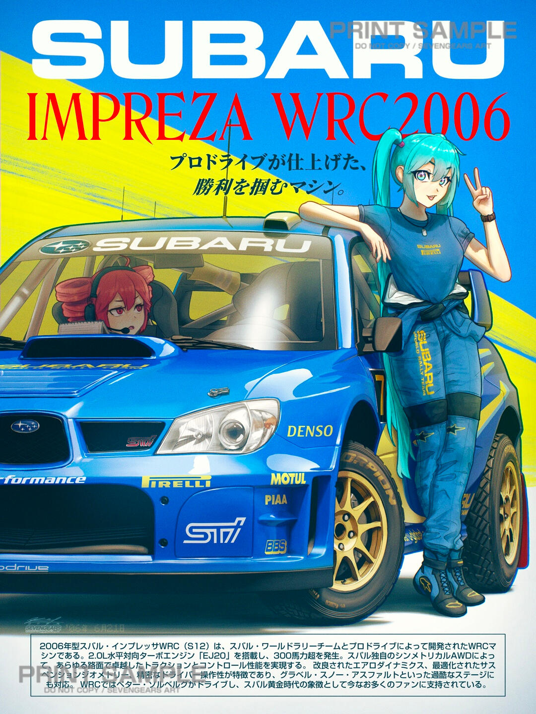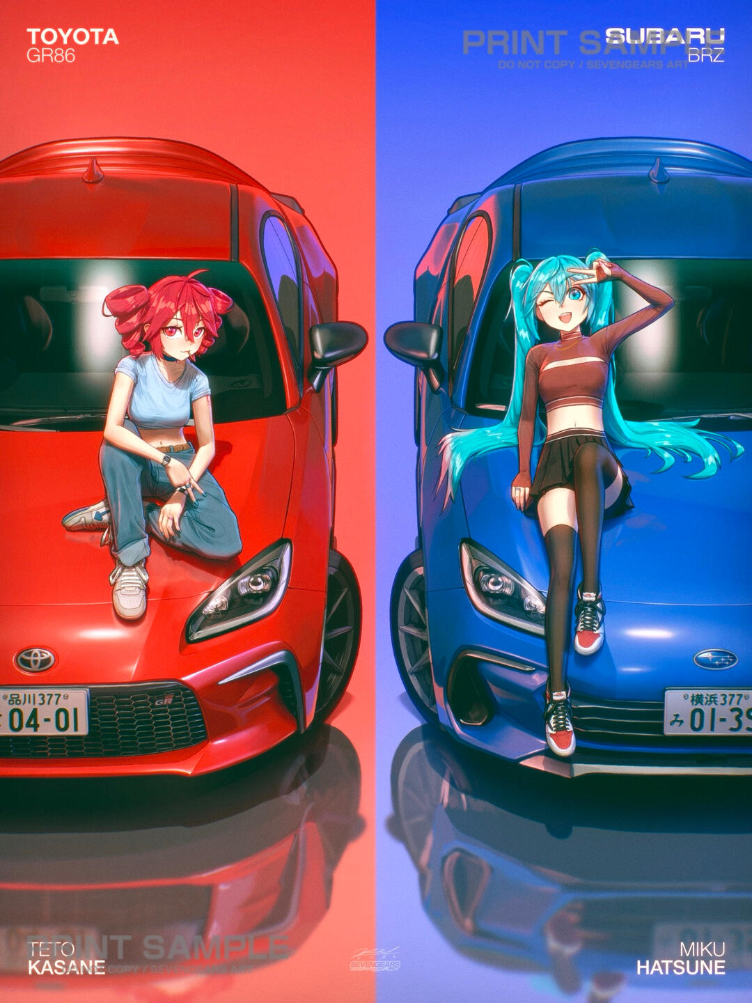 Hi, I’m Kenny, a Vietnamese-American artist and owner of SevenGears Art. My work focuses on vibrant colors, detailed character illustrations, and catering to a car culture niche in the convention scene. I sell small and large posters featuring anime characters and Vocaloids paired with JDM and other iconic cars. Additionally, I sell stickers that heavily lean on internet humor, mainly showcasing characters like Hatsune Miku. All of my posters and stickers are produced in-house, ensuring every print is of the highest quality possible.Thank you for reading and visiting this page! I hope to share my work at more events and conventions :)